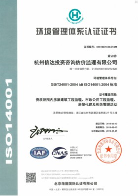 環(huán)境管理體系認證證書