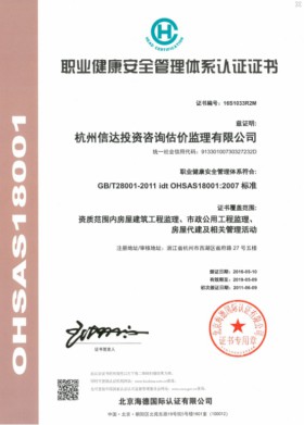 職業(yè)健康安全管理體系認證證書