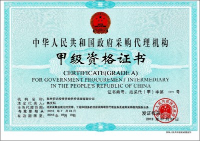 資質(zhì)類別:政府采購代理資格