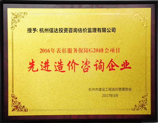 2016年表彰服務(wù)保障G20峰會(huì)項(xiàng)目先進(jìn)造價(jià)咨詢企業(yè)