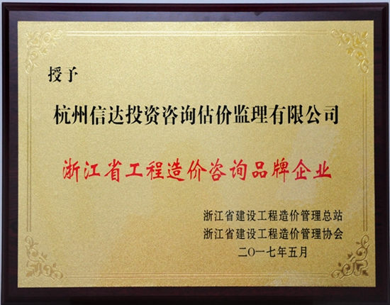 2017年5月被評(píng)為浙江省工程造價(jià)咨詢品牌企業(yè)