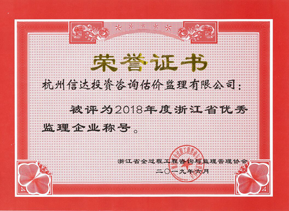 2018年度浙江省優(yōu)秀監(jiān)理企業(yè)