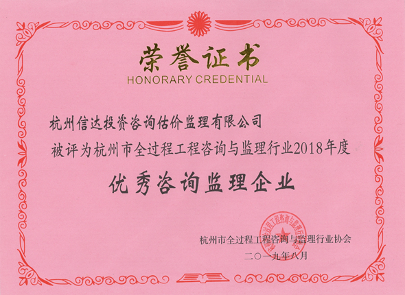 2018年度杭州市優(yōu)秀咨詢監(jiān)理企業(yè)