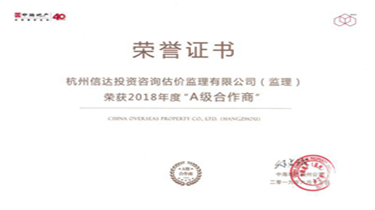 公司榮獲中海地產(chǎn)2018年度A級(jí)合作商稱號(hào)