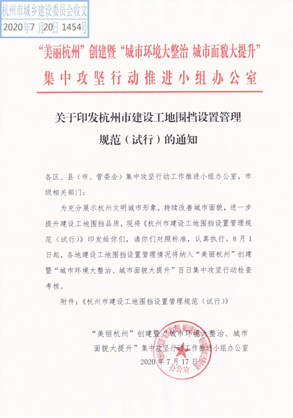 關于印發(fā)杭州市建設工地圍擋設置管理規(guī)范(試行)的通知